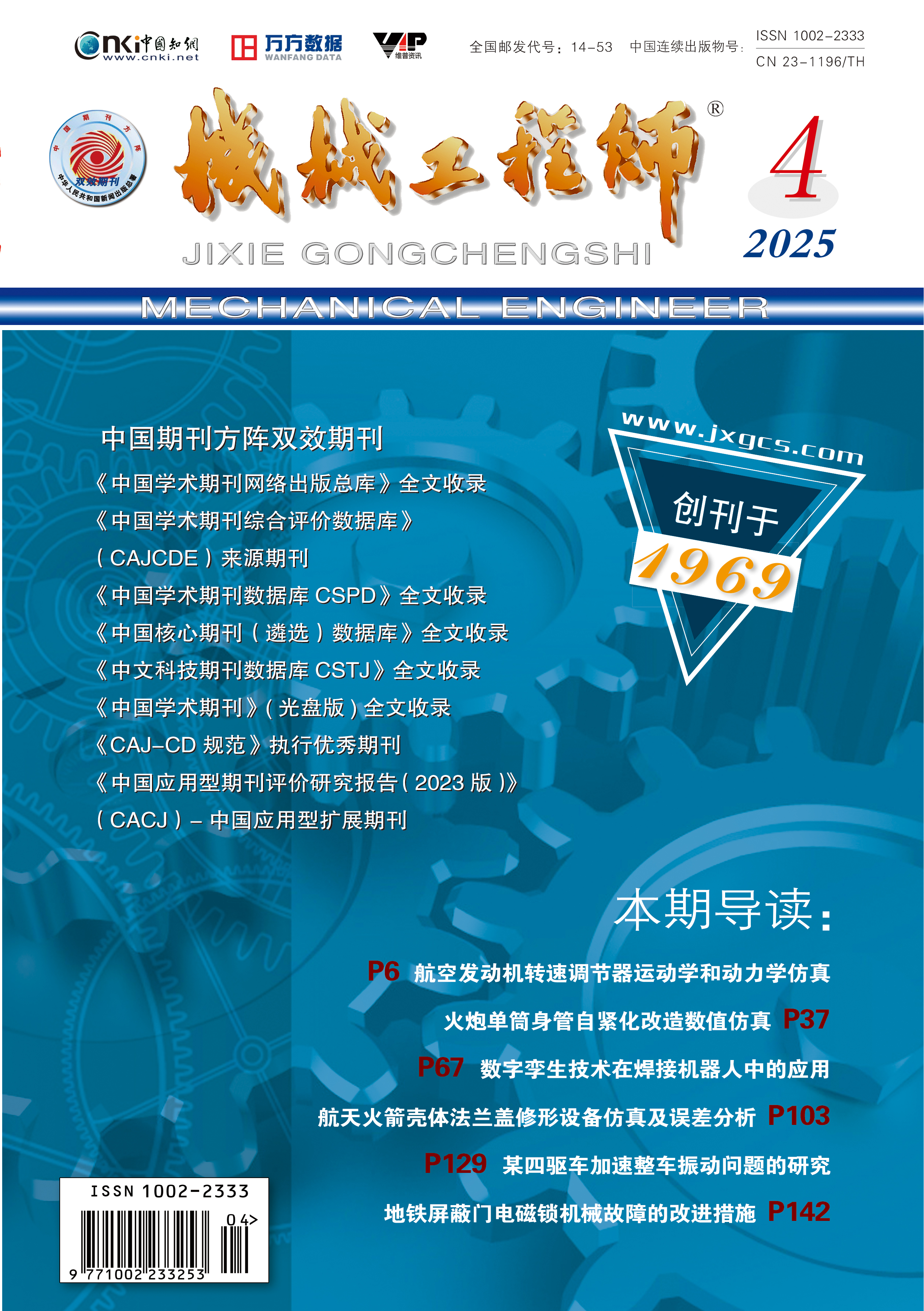 国内刊号:CN23-1196/TH | 国际刊号:ISSN1002-2333 | 邮发代号:14-53 | 单册定价:20.00元